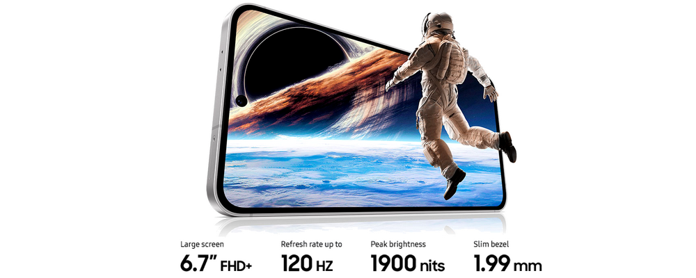 Displej smartfónu Samsung Galaxy S24 FE je ešte jasnejší a farebnejší ako kedykoľvek predtým. Dianie na obrazovke si užijete ešte viac vďaka tenším rámčekom. Displej má 6,7" uhlopriečku, ponúka špičkový jas až 1 900 nitov a obnovovacia frekvencia je skvelých 120 Hz.