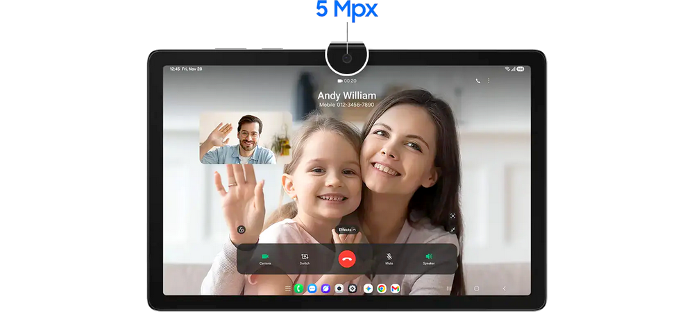 Tablet Samsung Galaxy Tab A11+ je pripravený na úzku spoluprácu s ekosystémom Samsung. Podpora SmartThings uľahčuje ovládanie smart domácnosti, zatiaľ čo integrácia asistenta Google Gemini rozširuje možnosti práce s obsahom, obrazovkou aj fotoaparátom. Predná kamera s rozlíšením 5 Mpx zaistí jasnejšie videohovory s rodinou aj kolegami, zadný 8Mpx fotoaparát s automatickým ostrením poslúži pre rýchle snímky dokumentov alebo momentiek. Nechýbajú WiFi ac, Bluetooth 5.3 či presné polohové služby GPS, GLONASS, Galileo a ďalšie.