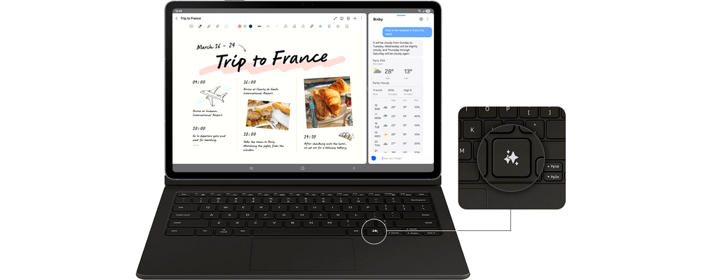 Jediné kliknutie na tlačidlo Galaxy AI vám umožní okamžite prejsť do sveta umelej inteligencie. Prispôsobte si ho na vyvolanie preferovaného AI asistenta, ktorý vám na tablete Samsung Galaxy Tab zjednoduší prácu a stane sa inteligentným spolupracovníkom, vždy pripraveným po vašom boku.
