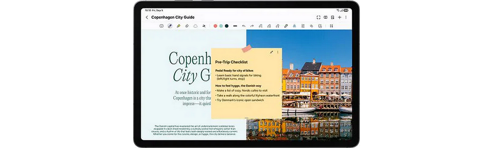 Majte Rýchle nástroje pre S Pen hneď poruke. Upravte si nastavenia, ako je hrúbka hrotu, farba, obľúbené, Poznámkový asistent a oveľa viac – bez zložitého hľadania a preklikávania.