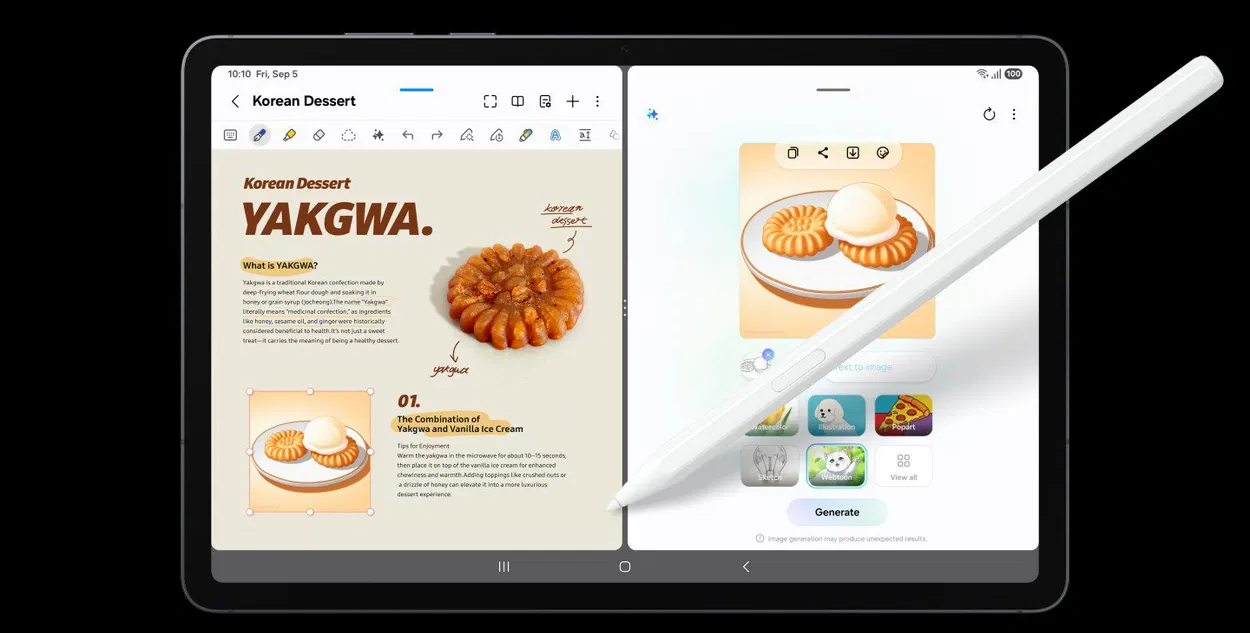 Zdieľajte obrazovku Galaxy Tab S11 s Gemini Live a okamžite získajte potrebné informácie. Stačí dlho stlačiť bočné tlačidlo a požiadať Gemini Live o radu s tým, čo sa zobrazuje na displeji. Inteligentnému asistentovi môžete dokonca klásť otázky, vytvárať prompty a voľne s ním konverzovať, aby vám pomohol nájsť odpovede.