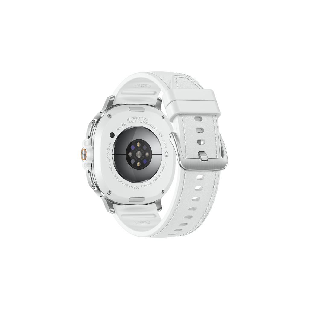 Displej - úhlopříčka [palce]: 1,34" Displej - rozlišení [pix]: 438 × 438 Svítivost: 3 000 nits Procesor: Exynos W1000 (5 core, 3 nm) Paměť: 2,0 GB RAM + 64 GB vnitřní paměť Materiál hodinek: nerezová ocel, safírové sklo Konektivita: Bluetooth 5.3, Wi-Fi 2.4 GHz & 5 GHz Voděodolnost: IP68 + 5 ATM, MIL-STD-810H Senzory: Tepová frekvence, EKG, krevní tlak, IHRN, BioActive senzor, okysličení krve, spánek, stres, energy skóre, cévní zátěž, antioxidant index, akcelerometr, gyroskop, barometr, GPS, NFC, světelný senzor, infračervený snímač teploty Funkce: Mikrofon, reproduktor, akční tlačítko, otočná luneta, detekce pádu, SOS volání Baterie: • Bezdrátové nabíjení • Rychlonabíjení • Kapacita [mAh]: 445 mAh Rozměry [mm]: 46,4 × 46,0 × 10,6 mm Hmotnost [g]: 63,5 g Obsah balení:hybridní řemínek, bezdrátová nabíječka, průvodce rychlým spuštěnímDodatočné parametre