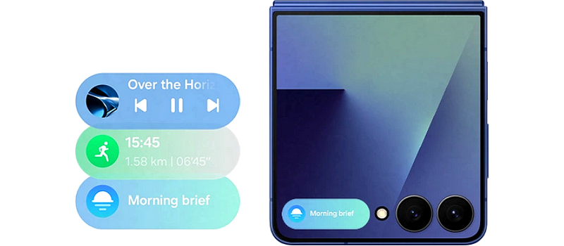 Naplánované udalosti v kalendári, Energy skóre alebo aktuálne počasie – s funkciou Now Brief sa ti zobrazia tieto aj ďalšie užitočné informácie už na vonkajšom displeji, takže máš o všetkom prehľad, a pritom sa ti zložený telefón doslova vojde do dlane.