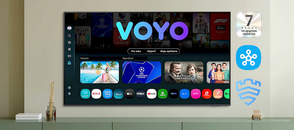 Sledujte tisíce filmov a seriálov na Voyo, Netflix a Disney+ alebo zapnite obľúbenú hru cez Cloud. Aby vás pri zábave nič nerušilo, tak môžete v aplikácii SmartThings naplánovať chod svojej inteligentnej domácnosti. O všetko ostatné sa už postará až 7 rokov aktualizácií, ktoré udržia váš TV v bezpečí.
