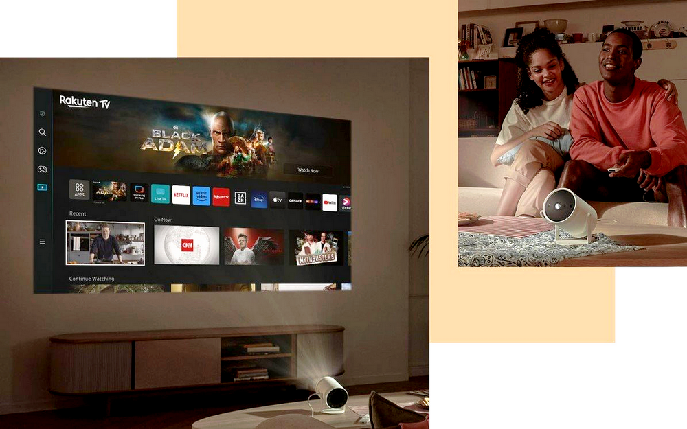 Urobte si letné kino kdekoľvek si budete priať s možnosťou pripojiť projektor Samsung k externej batérii. Postačí vám na to kábel USB-C a batéria, ktorá podporuje USB-PD a výstup 50 W/20 V alebo vyšší. Potom už vám stačí iba vybrať obľúbený film a zábava môže začať.