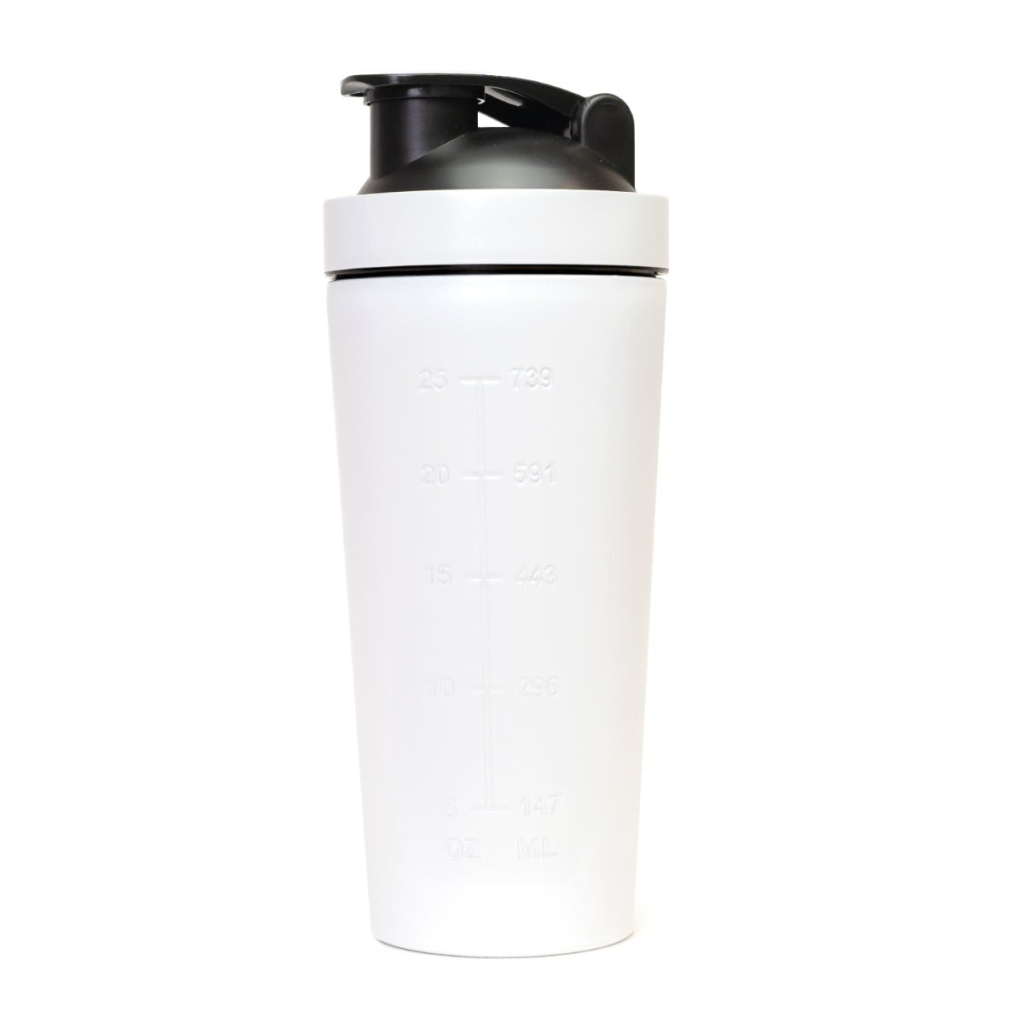 Šejker Steel White je vyrobený z nehrdzavejúcej ocele, no napriek tomu je ľahký a praktický. Má objem 750 ml a je uzatvárateľný na závit. Vďaka kvalitnému materiálu je odolnejší a hygienickejší ako plastový šejker. Výborne vám poslúži na precízne rozmiešanie vašich obľúbených doplnkov výživy. Navyše, nezadržiava zápach, a preto má dlhšiu životnosť.