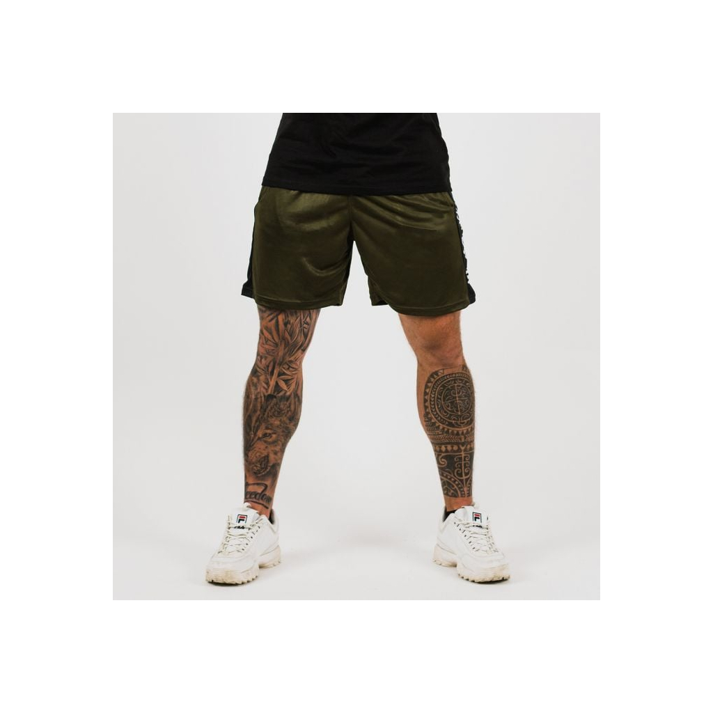 Šortky Vertical Military Green sú ultra jemné pánske šortky v tmavozelenej farbe, ktoré obsahujú po bokoch aj čierne pásy, a tie im dodávajú šmrnc. Sú vyrobené zo 100 % polyesteru, vďaka čomu sú ľahké, vzdušné, a teda ideálne na akúkoľvek športovú aktivitu, od posilňovania, až po beh. Dobre sa v nich budete cítiť aj v pohodlí domova. V páse šortiek sa nachádza guma, ktorá zabezpečuje pohodlnejšie nosenie, a sťahovacie šnúrky, pomocou ktorých možno regulovať obvod pásu.