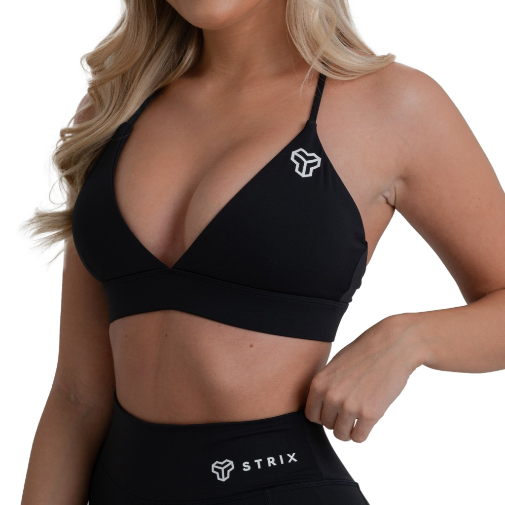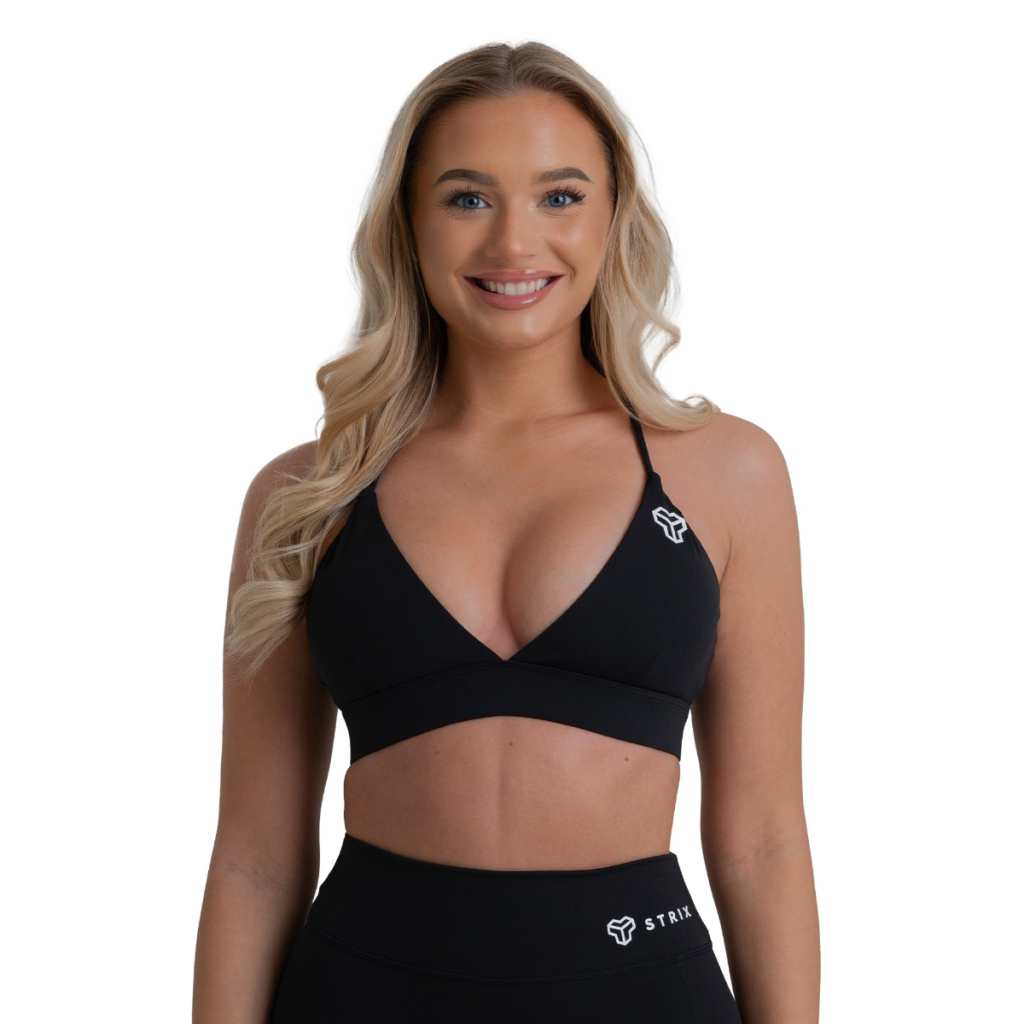Má dve nastaviteľné špagetové ramienka s prekrížením na chrbte, vďaka ktorým si môžete podprsenku tvarovo upraviť podľa svojich predstáv. Celkové vyhotovenie s košíčkami trojuholníkového tvaru dopĺňa vkusný véčkový výstrih, ktorý umocňuje jej štýlový vzhľad. Veľkou výhodou podprsenky je minimalistický dizajn. Základom je jednofarebný podklad, ktorý dopĺňa decentné logo STRIX v hornej časti ľavého prsníka. Jednoducho sa kombinuje a bude sa perfektne hodiť k šortkám, legínam aj teplákom. Ak hľadáte pohodlnú podprsenku na šport aj voľný čas, práve ste ju našli.