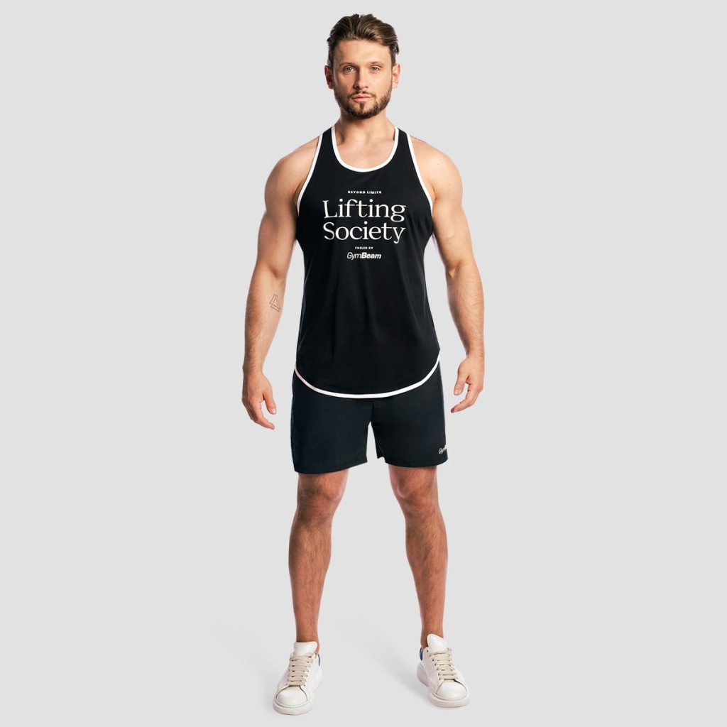 Toto pánske stringer tielko sa vyznačuje predovšetkým strihom, ktorý je navrhnutý pre maximálny rozsah pohybu a zvýraznenie postavy. Hlboké prieramky (výstrihy pre paže) a tenké ramienka s veľkým výstrihom na chrbte nechajú vyniknúť vypracované svaly ramien, paží aj chrbta. Dizajnu dominuje veľká potlač „Lifting Society“ a jeho vzhľad pripomínajúci legendárne časy posilňovania podčiarkuje kontrastné lemovanie a zaoblený spodný lem.