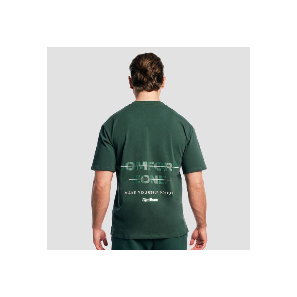 Toto pánske tričko sa vyznačuje trendovým oversized strihom, ktorý poskytuje neobmedzenú voľnosť pohybu. Dizajn je zámerne minimalistický spredu, kde ho zdobí len malé logo GymBeam. Výraznejšia je zadná časť s veľkým prečiarknutým nápisom „COMFORT ZONE“ a mottom „MAKE YOURSELF PROUD“, ktoré slúži ako neustála pripomienka vašich cieľov.