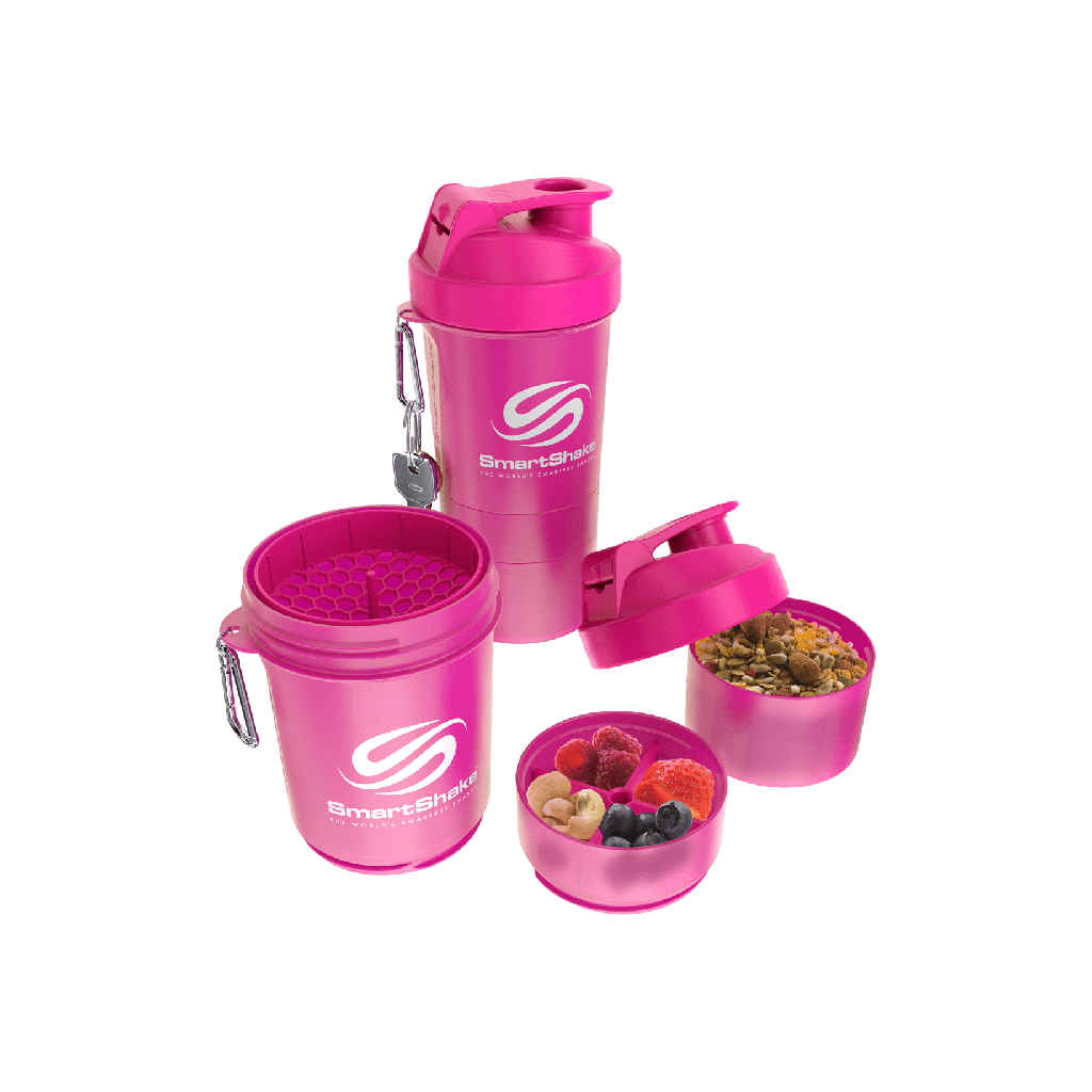 Viacdielny šejker SmartShake Original je vysoko kvalitný šejker na rozmiešanie vášho nápoja. Navyše je vybavený aj dvoma priehradkami na uloženie tabletiek, kapsúl alebo proteínového prášku. Je vyrobený z plastu bez použitia BPA a je 100 % nepriepustný. Môžete ho ohrievať v mikrovlnnej rúre, zmrazovať v mrazničke alebo jednoducho umývať v umývačke riadu. Je skrátka určený pre skutočný život. Viacdielny šejker SmartShake Original má unikátny a kompaktný dizajn, ale pritom je ľahký aj praktický. Súčasťou je samozrejme aj sitko, ktoré zaistí dokonalé rozmiešanie nápoja. A nechýba ani dizajnová karabína na zavesenie nádoby.