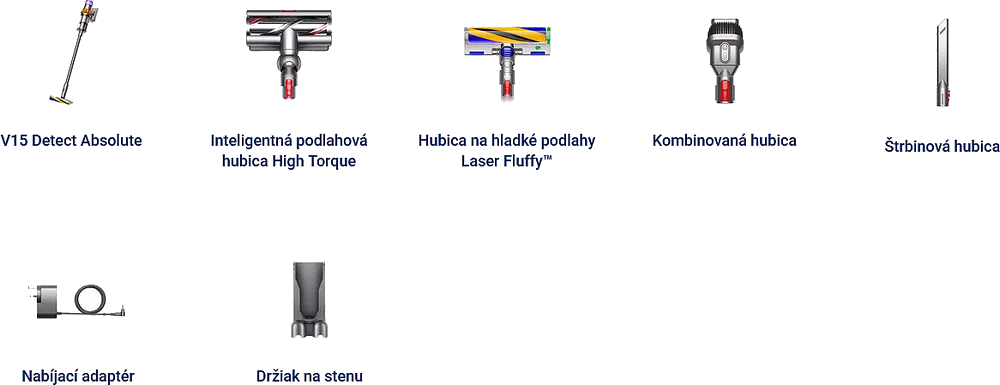 Obsah balenia tyčového vysávača Dyson V15 Detect Absolute 2023