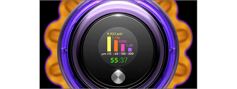 Piezo senzor v Dyson V15 Detect Absolute 2023 nepretržite sleduje a počíta mikroskopické prachové častice, a keď je potrenéa, automaticky zvýši sací výkon na maximálne účinné upratovanie.