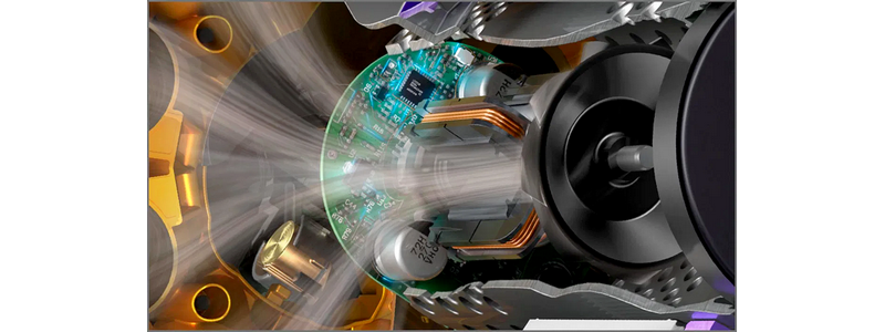 Digitálny motor Dyson Hyperdymium™ vo vysávači Dyson V15 Detect Absolute 2023 dosahuje až 125 000 ot./min, čo mu umožňuje efektívne vysávať mikroskopický prach aj väčšie nečistoty s ľahkosťou a silou.