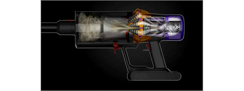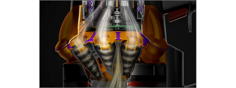 Vo vysávači Dyson V15 Detect Absolute 2023 vytvára 14 cyklónov technológie Root Cyclone™ odstredivú silu až 100 000 G, ktorá efektívne zachytáva prach a nečistoty zo vzduchu bez toho, aby došlo k strate sacieho výkonu.